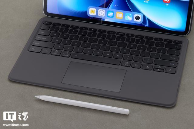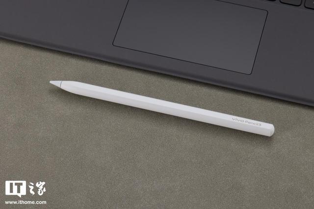 除了平板,IT之家还拿到了 vivo Pencil3 手写笔以及智能触控键盘 6 Pro。vivo Pencil3 整体设计上和上一代差别不大,笔身纯白设计,表面有竖直的棱线,增加视觉上的硬朗感同时也带来更扎实的握持手感。