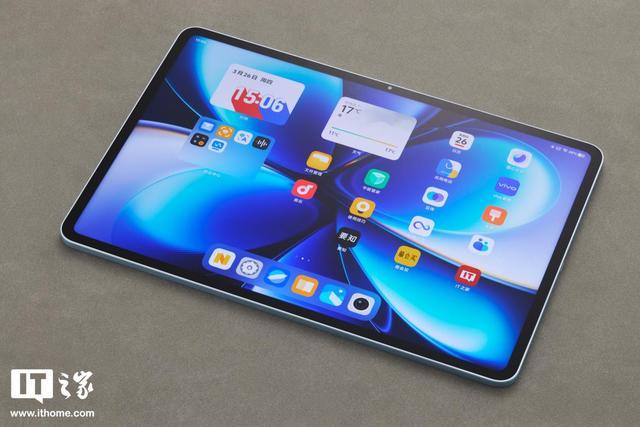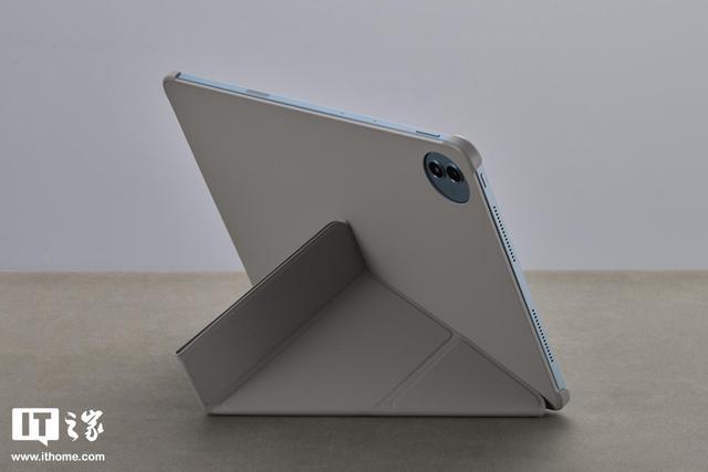 IT之家拿到的这款为松弛蓝配色,这种蓝色色泽淡雅,视觉上能带来轻松、治愈的感觉。平板采用一体化的铝合金外壳,表面为细腻的喷砂质感,搭配这种蓝色,减少了金属的锐利视感,增加了温润感。