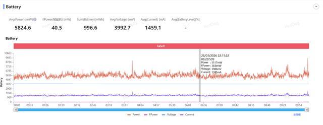 测得 vivo Pad6 Pro 在运行这款游戏时的平均功耗为 8.7W,整体的压力还是比较大的。
