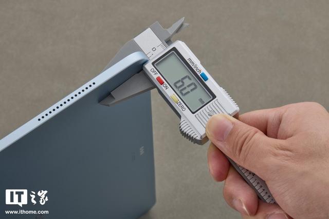 vivo Pad6 Pro 机身很薄,IT之家实测厚度只有 6mm(官方数据为 6.18mm),长和宽分别为 297.03mm、199.82mm。